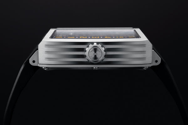 Breaking free from circular dials and rotating hands, MS1001 introduces a dual linear time display driven by precision lead screws.