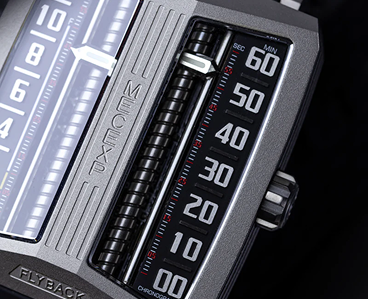 Two linear flyback indicators — one for hours, one for minutes — transform time into synchronized, mechanical motion.